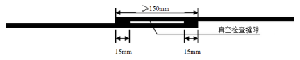 板材采用双缝热熔自动焊接机焊接。依据板材的厚度和自然环境的温差调整好焊接机的速度和焊接温度进行焊接。焊接完后的卷材表面留有空气道,用以检测焊接质量,具体见“防水板焊接示意图”。