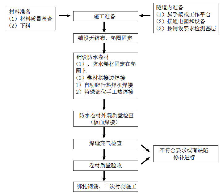 6.1.1.防水板超前二次衬砌10~20m施工,用自动爬行热焊机进行焊接,铺设采用专用台车进行。