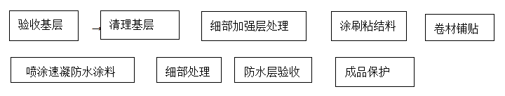 8.6.1、阴阳角,施工缝、卷材层完成后,再施工速凝橡胶沥青防水涂料。