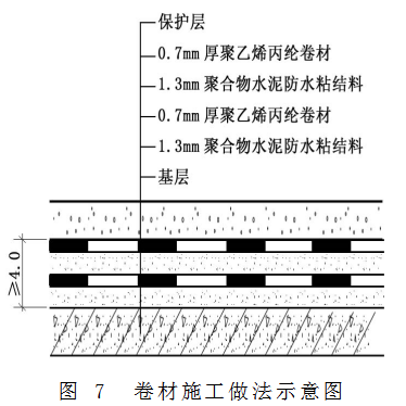 7、聚乙烯丙纶复合防水卷材与非固化橡胶沥青防水涂料复合施工
