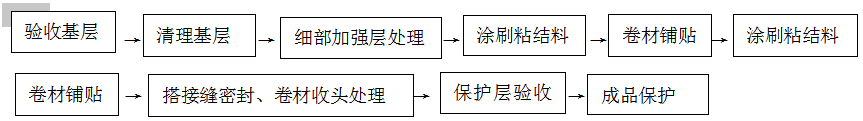 1.4、防水卷材采用粘结料满粘施工,卷材两面复合的丙纶长丝无纺布上有无数个均匀小孔洞,与基层粘结力强、亲和性好,卷材与基底粘结牢固,不窜水;