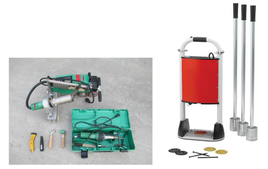 常用的防水施工机具分为四大类,即:一般施工机具、热熔卷材施工机具、热焊接卷材施工机具和堵漏施工机具。