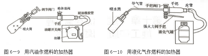 图6—9 用汽油作燃料的加热器 图6—10 用液化气作燃料的加热器