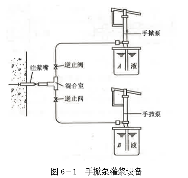 11.手掀泵灌浆设备(图6-1):用于建筑堵漏注浆。